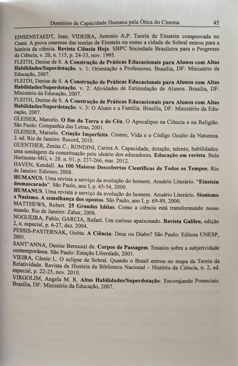 VIRGOLIM, Angela M. R. Altas Habilidades/Superdotação: Encorajando Potenciais. Brasília, DF: Ministério da Educação, 2007.